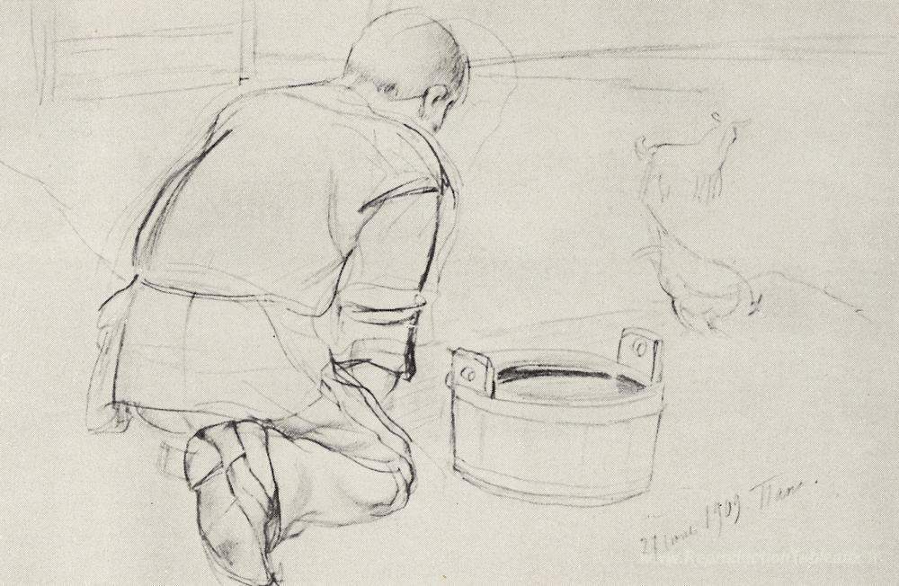 Nous vous proposons une reproduction artisanale sur toile du célèbre tableau 'Figure de S.F.Petrova-Vodkin, le père de l'artiste, à genoux de ' de Kuzma Petrov-Vodkin, provenant du Musée de la Reproduction.