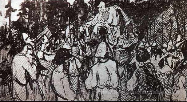 Nous vous proposons une reproduction artisanale sur toile du célèbre tableau 'Figures des anciens' de Nicholas Roerich, provenant du Musée de la Reproduction.