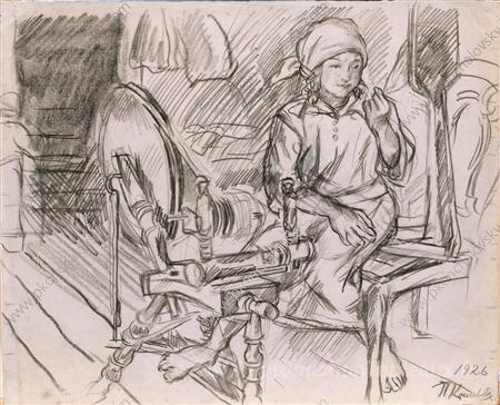 Nous vous proposons une reproduction artisanale sur toile du célèbre tableau 'Fileur. Dessin pour la peinture «Spinner».' de Pyotr Konchalovsky, provenant du Musée de la Reproduction.