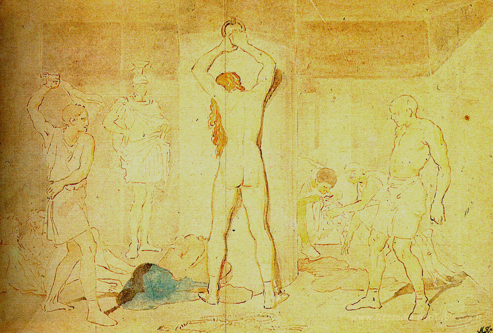 Nous vous proposons une reproduction artisanale sur toile du célèbre tableau 'Flagellation du Christ' de Alexander Ivanov, provenant du Musée de la Reproduction.