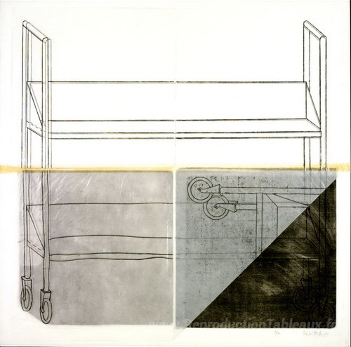 Nous vous proposons une reproduction artisanale sur toile du célèbre tableau 'Grand chariot' de Dieter Roth, provenant du Musée de la Reproduction.