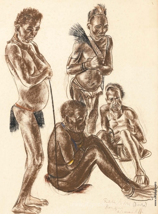 Nous vous proposons une reproduction artisanale sur toile du célèbre tableau 'Hommes de la tribu Banda' de Alexandre Jacovleff, provenant du Musée de la Reproduction.