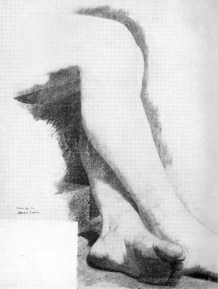 Nous vous proposons une reproduction artisanale sur toile du célèbre tableau 'Jambes d'un modèle assis' de Thomas Eakins, provenant du Musée de la Reproduction.