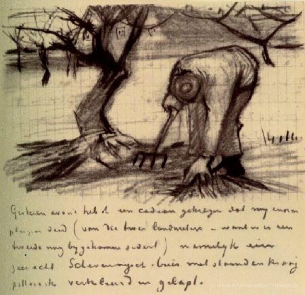 Nous vous proposons une reproduction artisanale sur toile du célèbre tableau 'Jardinier près d'un pommier noueux' de Vincent van Gogh, provenant du Musée de la Reproduction.