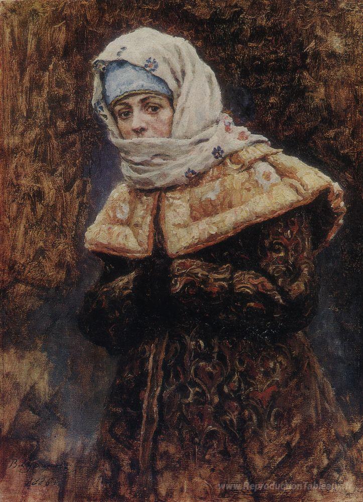 Nous vous proposons une reproduction artisanale sur toile du célèbre tableau 'Jeune femme' de Vasily Surikov, provenant du Musée de la Reproduction.