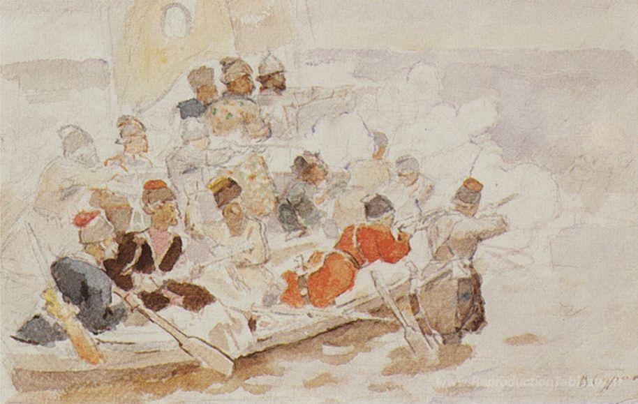 Nous vous proposons une reproduction artisanale sur toile du célèbre tableau 'La conquête de la Sibérie de Yermak (étude)' de Vasily Surikov, provenant du Musée de la Reproduction.