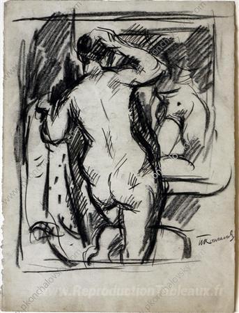 Nous vous proposons une reproduction artisanale sur toile du célèbre tableau 'La femme devant un miroir' de Pyotr Konchalovsky, provenant du Musée de la Reproduction.