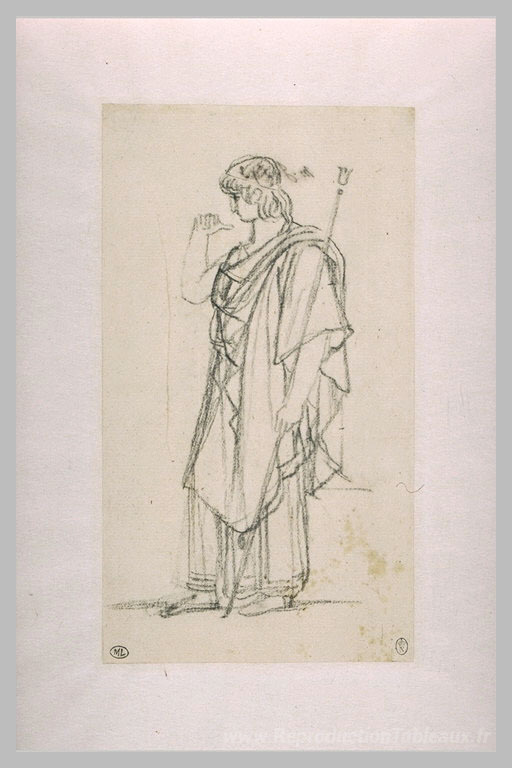 Nous vous proposons une reproduction artisanale sur toile du célèbre tableau 'La figure d'Oreste, debout drapée' de Pierre-Narcisse Guerin, provenant du Musée de la Reproduction.