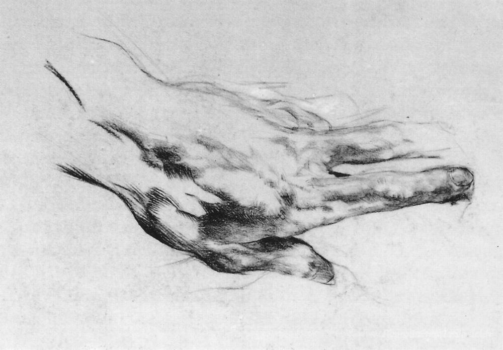 Nous vous proposons une reproduction artisanale sur toile du célèbre tableau 'La main de l'artiste gauche' de Mikhail Vrubel, provenant du Musée de la Reproduction.