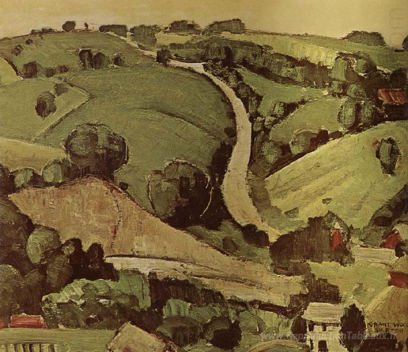 Nous vous proposons une reproduction artisanale sur toile du célèbre tableau 'La pierre du mur 1' de Grant Wood, provenant du Musée de la Reproduction.