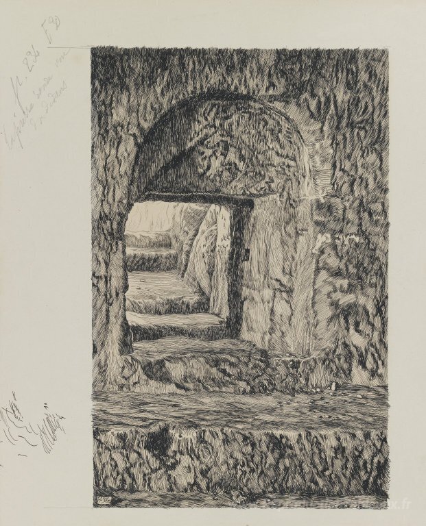 Nous vous proposons une reproduction artisanale sur toile du célèbre tableau 'La pierre ronde vue de l'intérieur' de James Tissot, provenant du Musée de la Reproduction.