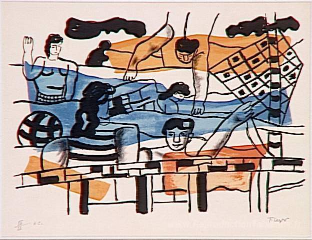 Nous vous proposons une reproduction artisanale sur toile du célèbre tableau 'La piscine' de Fernand Leger, provenant du Musée de la Reproduction.