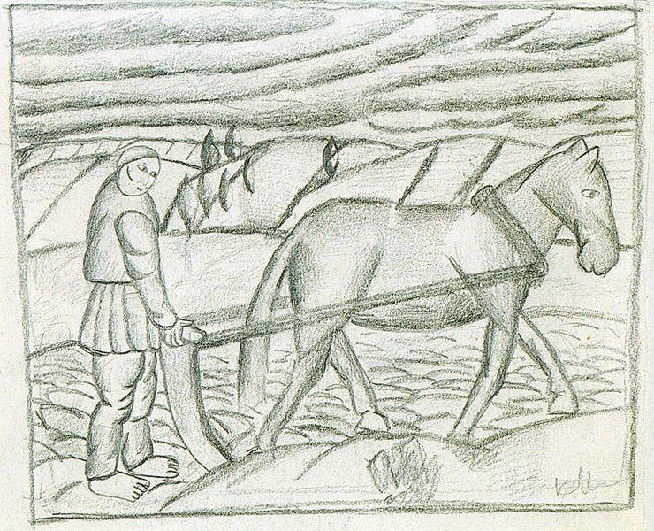 Nous vous proposons une reproduction artisanale sur toile du célèbre tableau 'Laboureur' de Kazimir Malevich, provenant du Musée de la Reproduction.