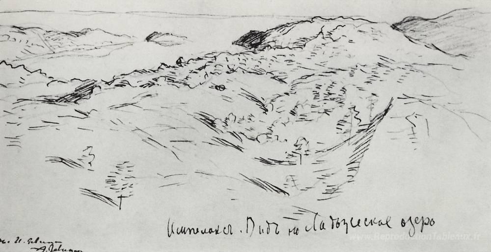 Nous vous proposons une reproduction artisanale sur toile du célèbre tableau 'Lac Ladoga' de Isaac Levitan, provenant du Musée de la Reproduction.