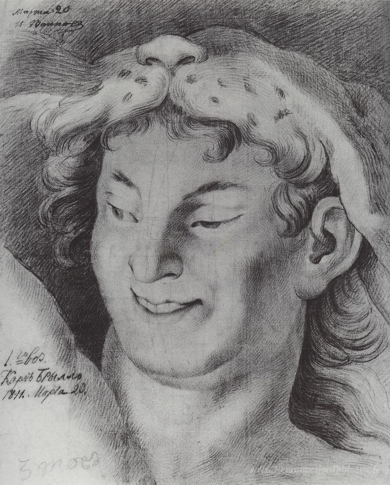 Nous vous proposons une reproduction artisanale sur toile du célèbre tableau 'Le chef de Bacchus' de Karl Bryullov, provenant du Musée de la Reproduction.
