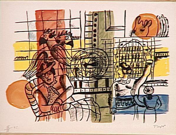 Nous vous proposons une reproduction artisanale sur toile du célèbre tableau 'Le marché des oiseaux' de Fernand Leger, provenant du Musée de la Reproduction.