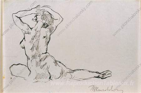Nous vous proposons une reproduction artisanale sur toile du célèbre tableau 'Le modèle assis en arrière' de Pyotr Konchalovsky, provenant du Musée de la Reproduction.