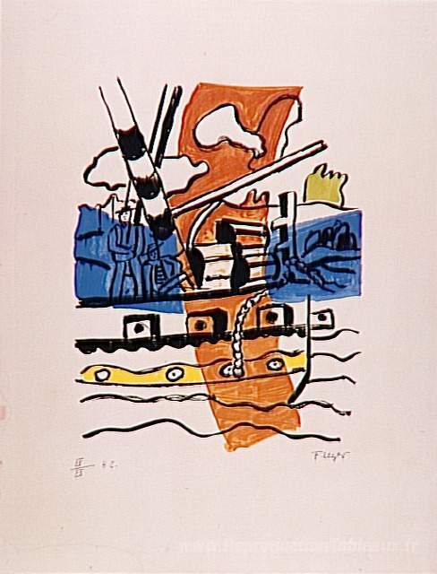 Nous vous proposons une reproduction artisanale sur toile du célèbre tableau 'Le remorqueur' de Fernand Leger, provenant du Musée de la Reproduction.