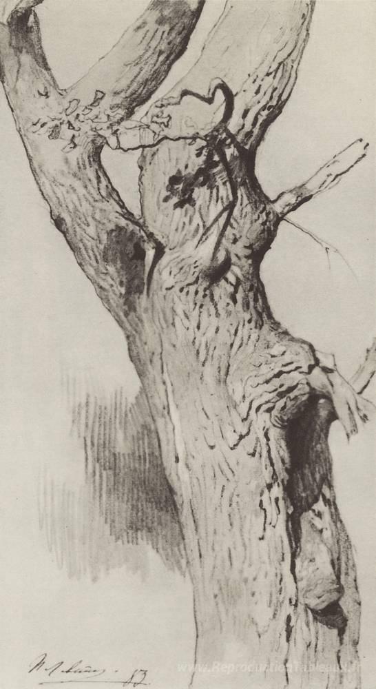 Nous vous proposons une reproduction artisanale sur toile du célèbre tableau 'Le tronc d'un vieil arbre' de Isaac Levitan, provenant du Musée de la Reproduction.