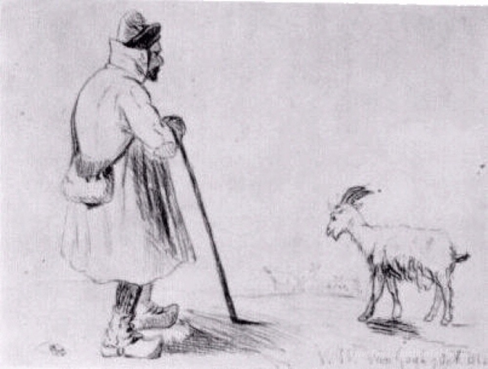 Nous vous proposons une reproduction artisanale sur toile du célèbre tableau 'Le troupeau de chèvre' de Vincent van Gogh, provenant du Musée de la Reproduction.