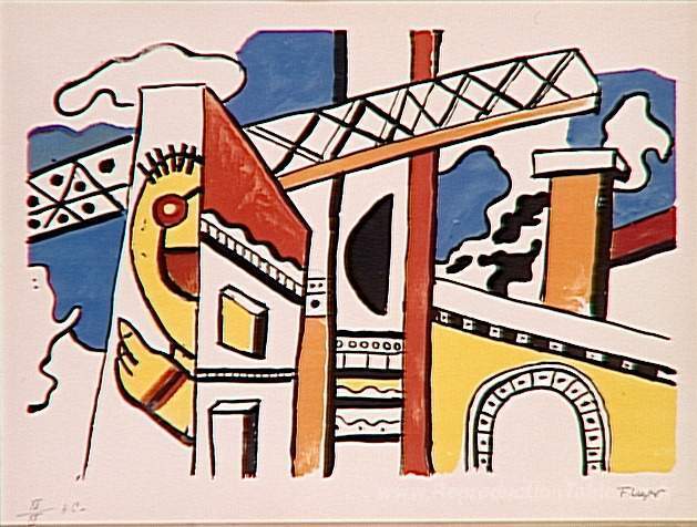 Nous vous proposons une reproduction artisanale sur toile du célèbre tableau 'Le viaduc' de Fernand Leger, provenant du Musée de la Reproduction.