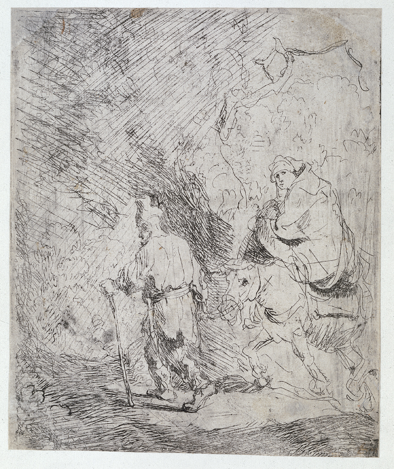 Nous vous proposons une reproduction artisanale sur toile du célèbre tableau 'Le vol en Égypte un croquis' de Rembrandt, provenant du Musée de la Reproduction.