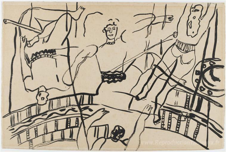 Bienvenue dans notre collection raffinée de peintures à l'huile, où chaque reproduction fait écho à l'expression artistique unique des maîtres d'antan. Vous découvrirez ici Les acrobates, étudient pour le cirque de l'illustre artiste Fernand Léger, une œuvre emblématique qui capture l'énergie et la dynamique du cirque à travers un style cubiste audacieux. Léger, connu pour sa palette vibrante et ses formes géométriques, réussit à transcender le simple spectacle pour créer une véritable ode à la vitalité humaine.