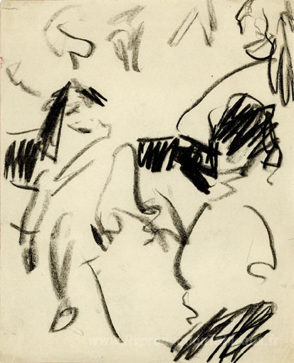 Nous vous proposons une reproduction artisanale sur toile du célèbre tableau 'Les Français sont assis sur le canapé' de Ernst Ludwig Kirchner, provenant du Musée de la Reproduction.