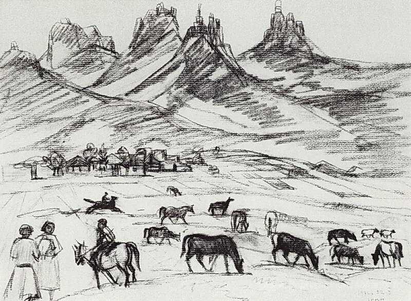Nous vous proposons une reproduction artisanale sur toile du célèbre tableau 'Lori' de Martiros Saryan, provenant du Musée de la Reproduction.