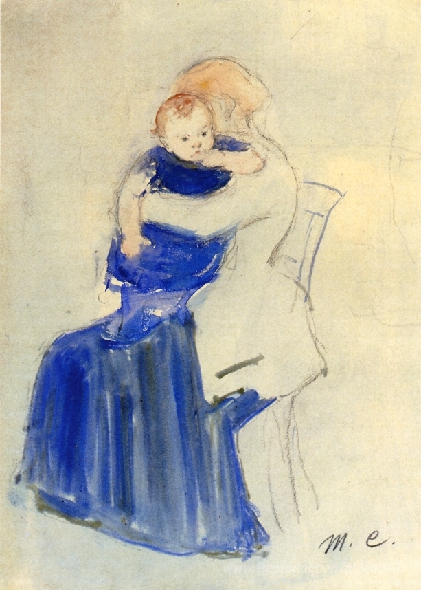 Nous vous proposons une reproduction artisanale sur toile du célèbre tableau 'Mère et l'enfant' de Mary Cassatt, provenant du Musée de la Reproduction.