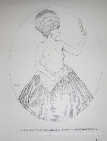 Nous vous proposons une reproduction artisanale sur toile du célèbre tableau 'Marquisette' de Raphael Kirchner, provenant du Musée de la Reproduction.