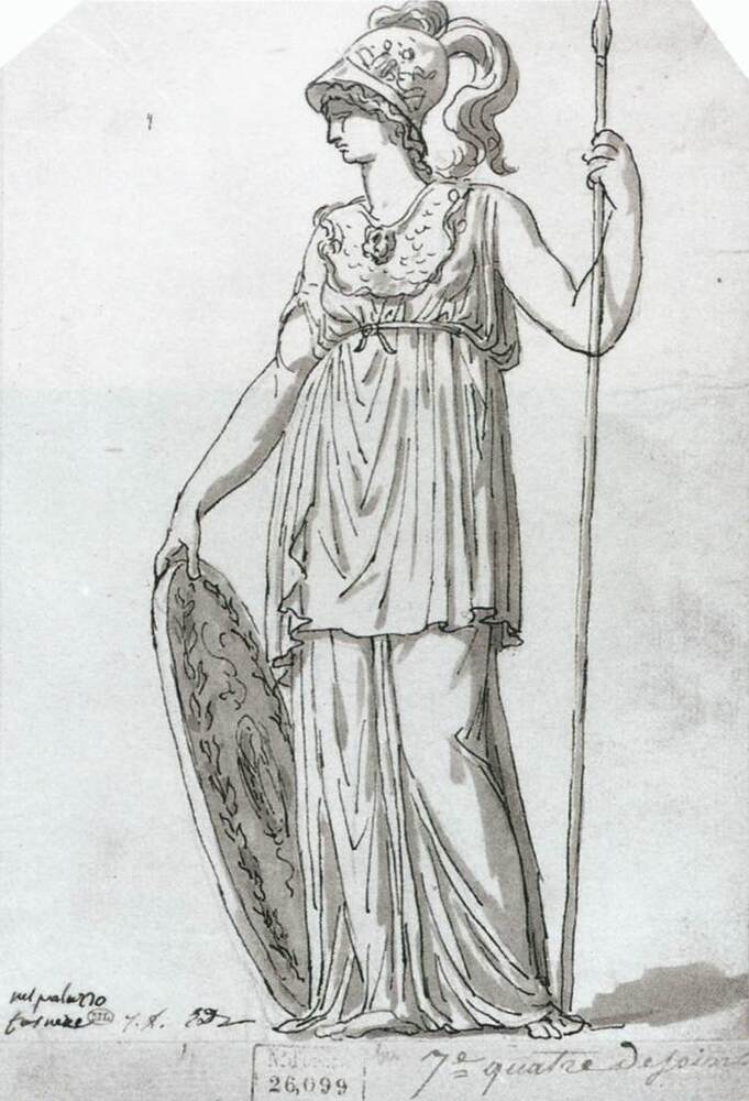 Nous vous proposons une reproduction artisanale sur toile du célèbre tableau 'Mineroir' de Jacques-Louis David, provenant du Musée de la Reproduction.