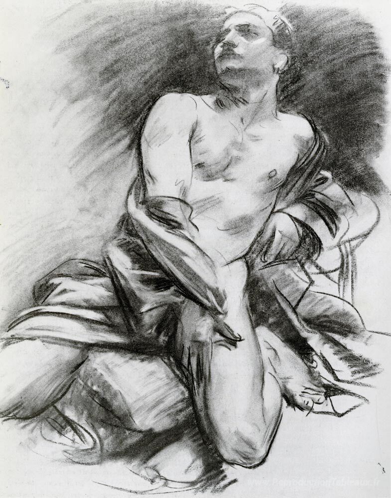 Nous vous proposons une reproduction artisanale sur toile du célèbre tableau 'Modèle à genoux' de John Singer Sargent, provenant du Musée de la Reproduction.