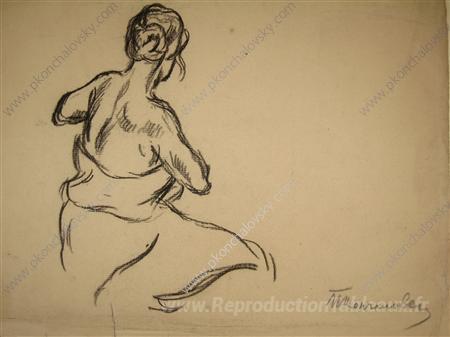 Nous vous proposons une reproduction artisanale sur toile du célèbre tableau 'Modèle assis enveloppé dans la draperie' de Pyotr Konchalovsky, provenant du Musée de la Reproduction.