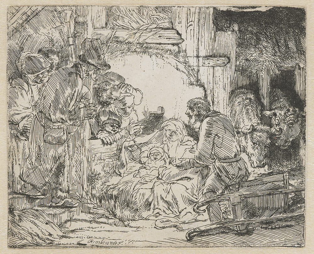 Nous vous proposons une reproduction artisanale sur toile du célèbre tableau 'Nativité' de Rembrandt, provenant du Musée de la Reproduction.