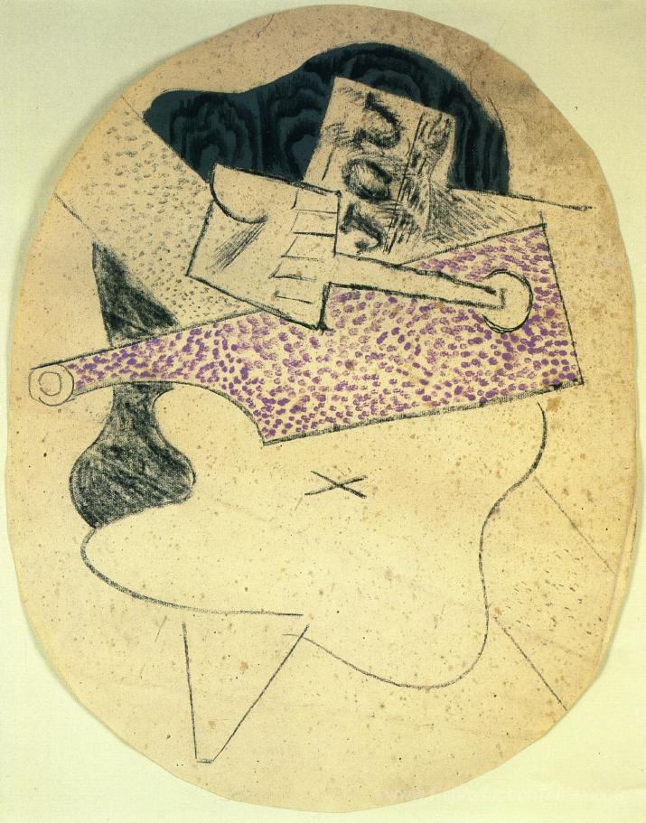 Nous vous proposons une reproduction artisanale sur toile du célèbre tableau 'Nature morte avec guitare' de Pablo Picasso, provenant du Musée de la Reproduction.