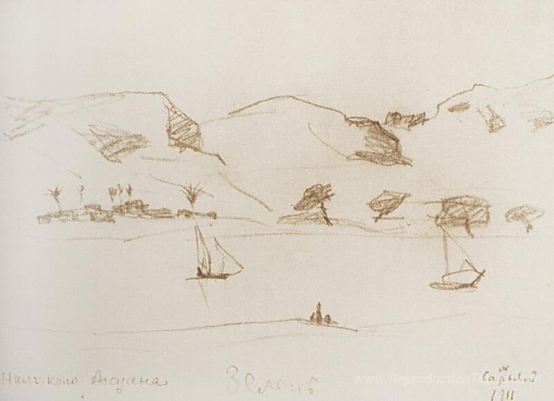 Nous vous proposons une reproduction artisanale sur toile du célèbre tableau 'Nil près d'Assouan' de Martiros Saryan, provenant du Musée de la Reproduction.
