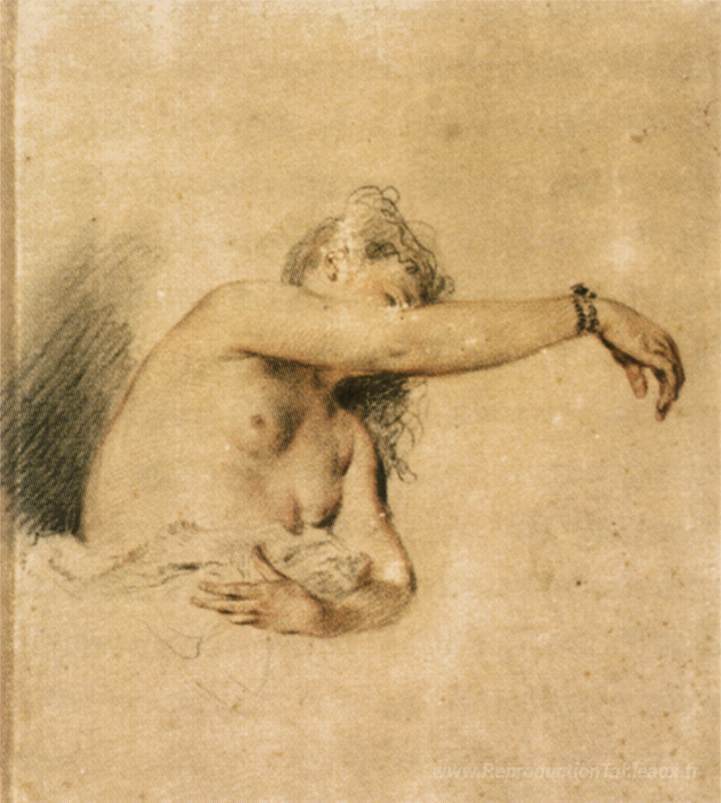 Nous vous proposons une reproduction artisanale sur toile du célèbre tableau 'Nu avec le bras droit élevé' de Antoine Watteau, provenant du Musée de la Reproduction.