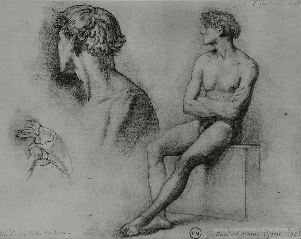 Nous vous proposons une reproduction artisanale sur toile du célèbre tableau 'Nude et autres études masculines' de Gustave Moreau, provenant du Musée de la Reproduction.