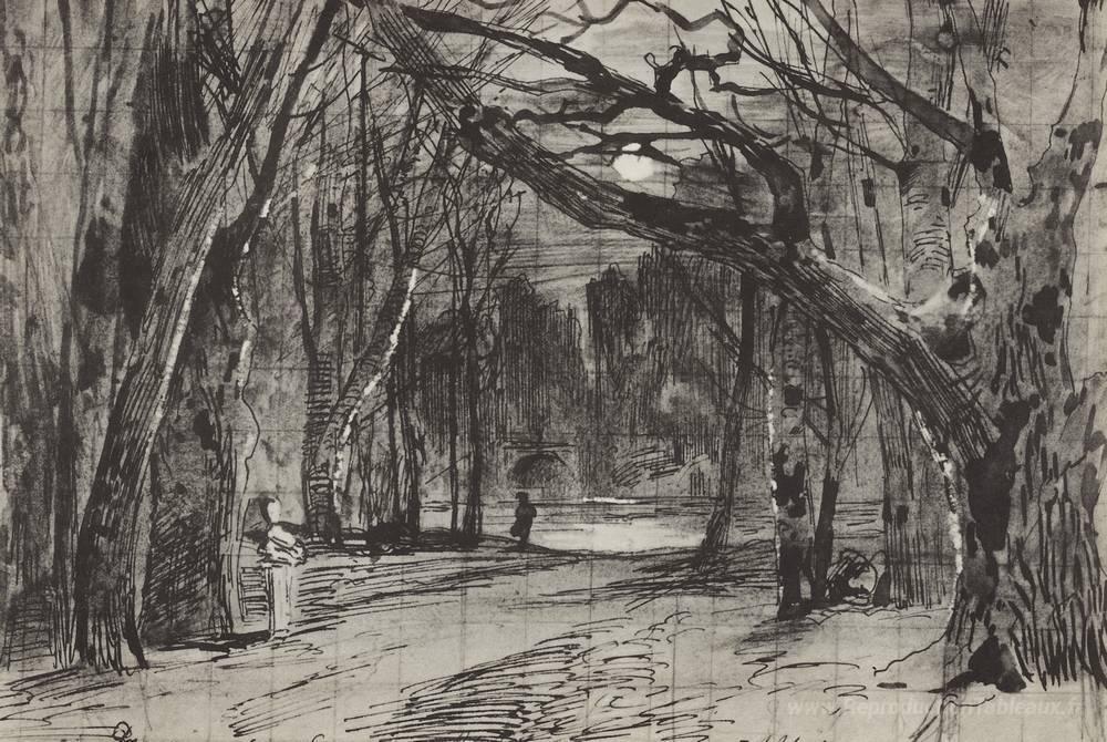 Nous vous proposons une reproduction artisanale sur toile du célèbre tableau 'Nuit au clair de lune au parc' de Isaac Levitan, provenant du Musée de la Reproduction.