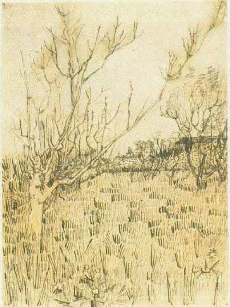 Nous vous proposons une reproduction artisanale sur toile du célèbre tableau 'Orchard avec Arles en arrière-plan' de Vincent van Gogh, provenant du Musée de la Reproduction.