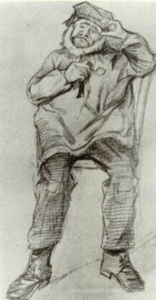 Nous vous proposons une reproduction artisanale sur toile du célèbre tableau 'Orphelin, portant un chemisier, assis avec une pipe' de Vincent van Gogh, provenant du Musée de la Reproduction.
