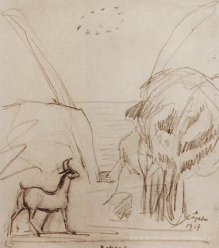 Nous vous proposons une reproduction artisanale sur toile du célèbre tableau 'Par la mer' de Martiros Saryan, provenant du Musée de la Reproduction.