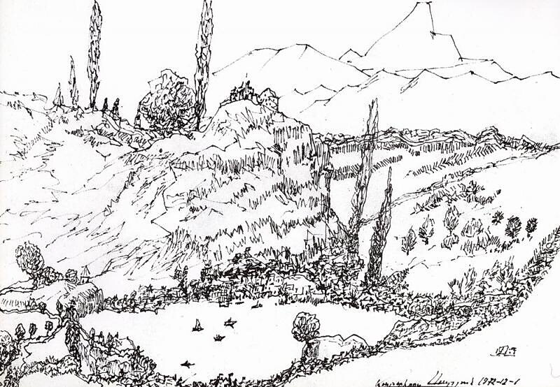 Nous vous proposons une reproduction artisanale sur toile du célèbre tableau 'Paysage de l'Arménie' de Martiros Saryan, provenant du Musée de la Reproduction.