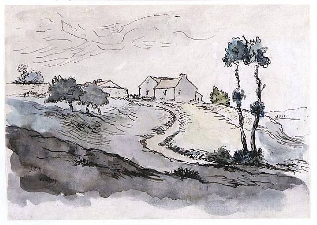 Nous vous proposons une reproduction artisanale sur toile du célèbre tableau 'Paysage près de Vichy' de Jean-Francois Millet, provenant du Musée de la Reproduction.