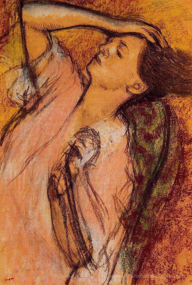 Nous vous proposons une reproduction artisanale sur toile du célèbre tableau 'Peigner les cheveux' de Edgar Degas, provenant du Musée de la Reproduction.