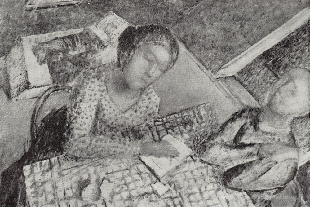 Nous vous proposons une reproduction artisanale sur toile du célèbre tableau 'Perspective sphérique étude' de Kuzma Petrov-Vodkin, provenant du Musée de la Reproduction.