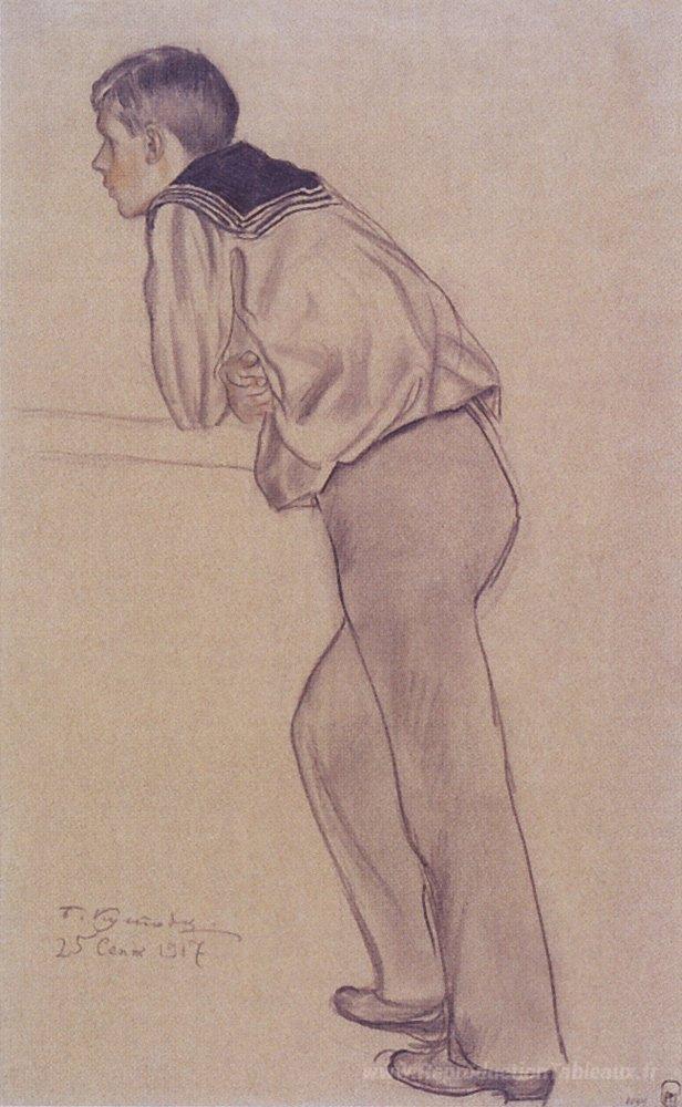 Nous vous proposons une reproduction artisanale sur toile du célèbre tableau 'Portrait de K.B. Kustodiev' de Boris Kustodiev, provenant du Musée de la Reproduction.