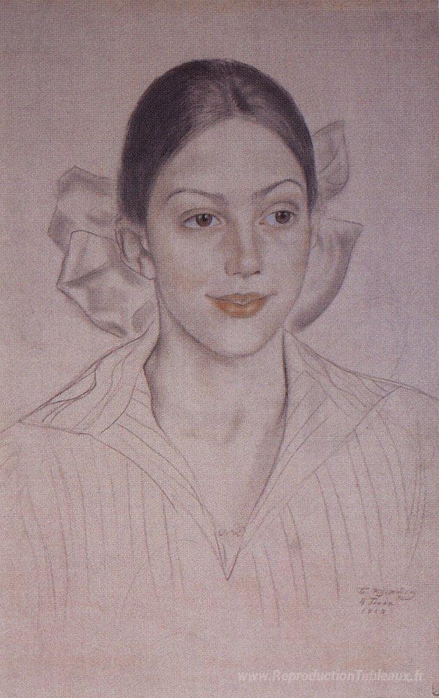 Nous vous proposons une reproduction artisanale sur toile du célèbre tableau 'Portrait de N.A. Kuznetsova' de Boris Kustodiev, provenant du Musée de la Reproduction.