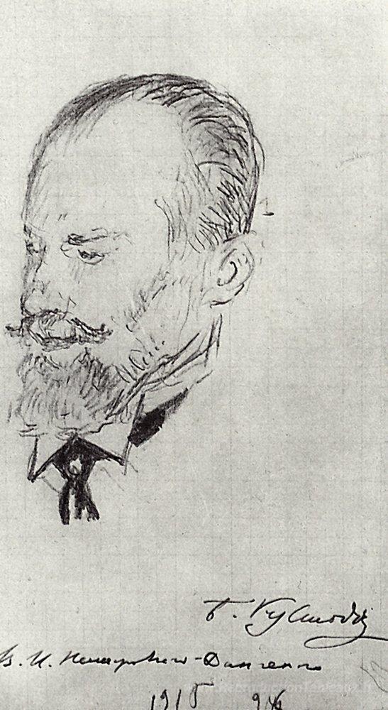 Nous vous proposons une reproduction artisanale sur toile du célèbre tableau 'Portrait de Vladimir Nemirovich-Danchenko' de Boris Kustodiev, provenant du Musée de la Reproduction.